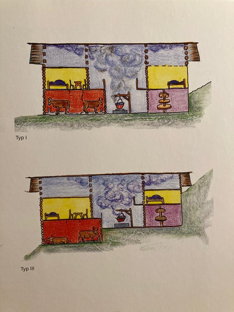 Also the structure and materials of the houses strengthen this feeling. For example all of the wooden structure houses have a slope roof. The roofs hangin over and connecting with each other to create a closed half ring embracing the water.